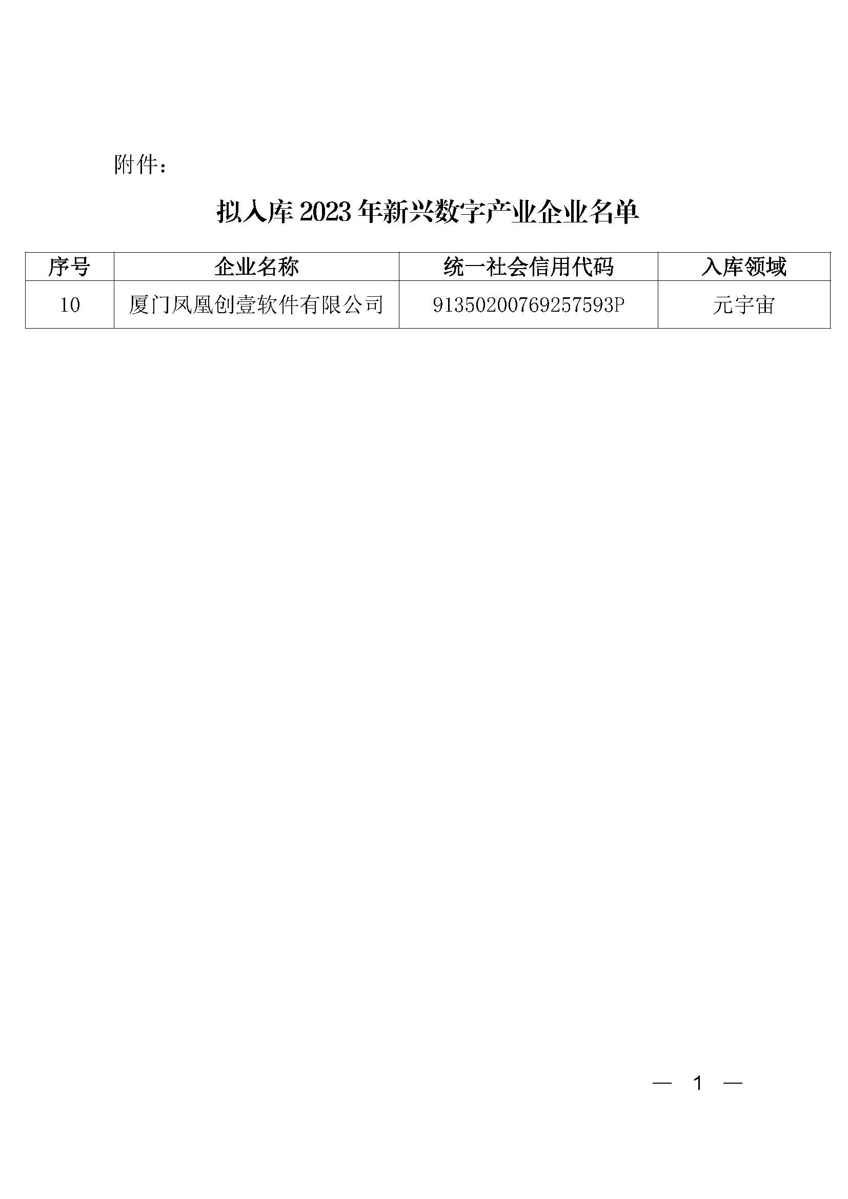 11月1日,廈門市工業(yè)和信息化局、廈門市大數(shù)據(jù)管理局發(fā)布關(guān)于擬入庫2023年廈門市新興數(shù)字產(chǎn)業(yè)企業(yè)名單的公示通知,鳳凰創(chuàng)壹作為元宇宙領(lǐng)域企業(yè)進(jìn)入擬入庫2023年廈門市新興數(shù)字產(chǎn)業(yè)企業(yè)名單。