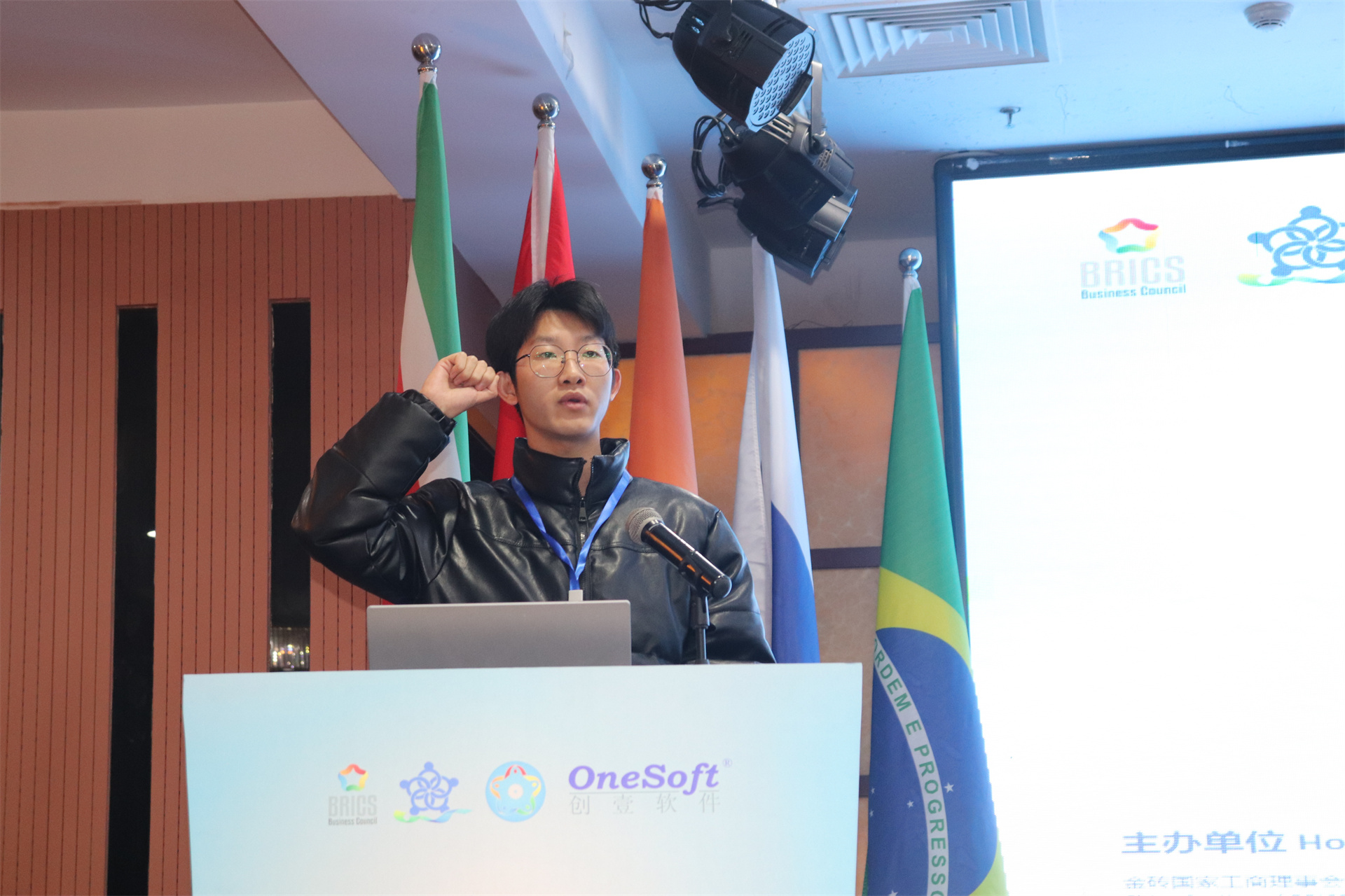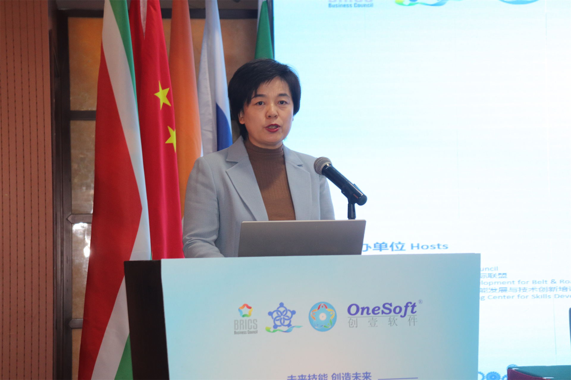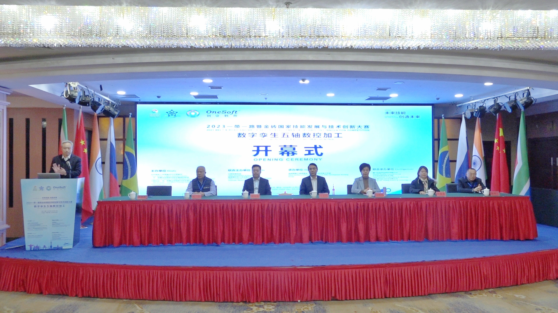 ▲金磚國家技能發(fā)展與技術(shù)創(chuàng)新大賽組委會副主任何美連宣布開幕