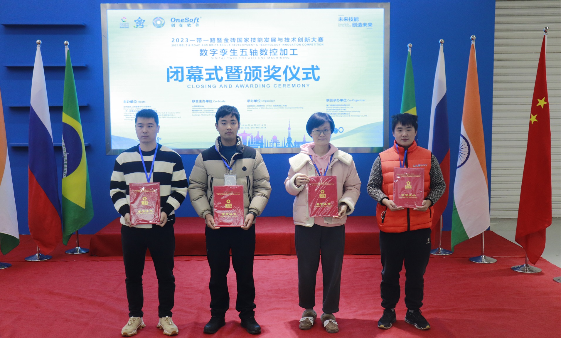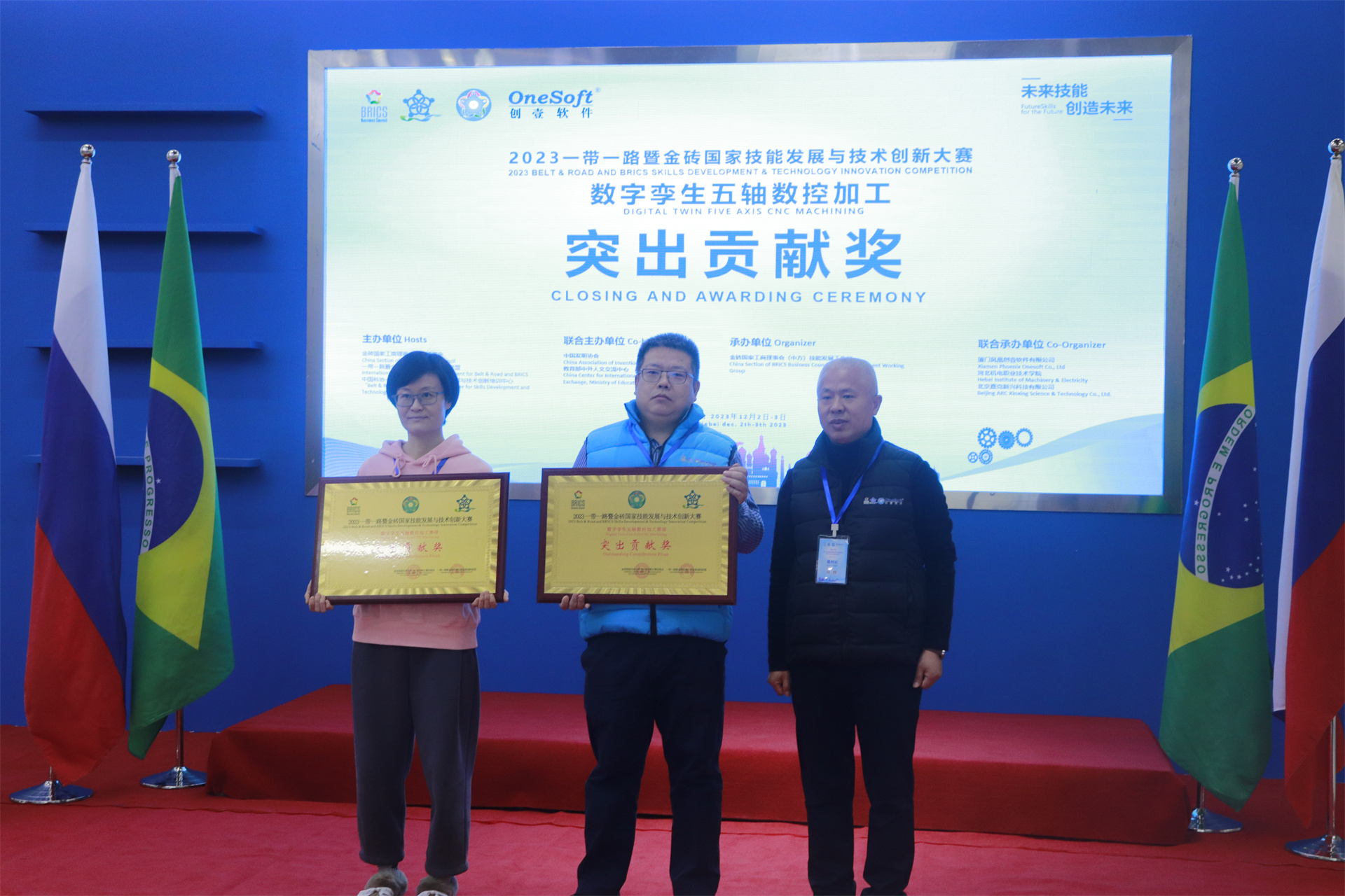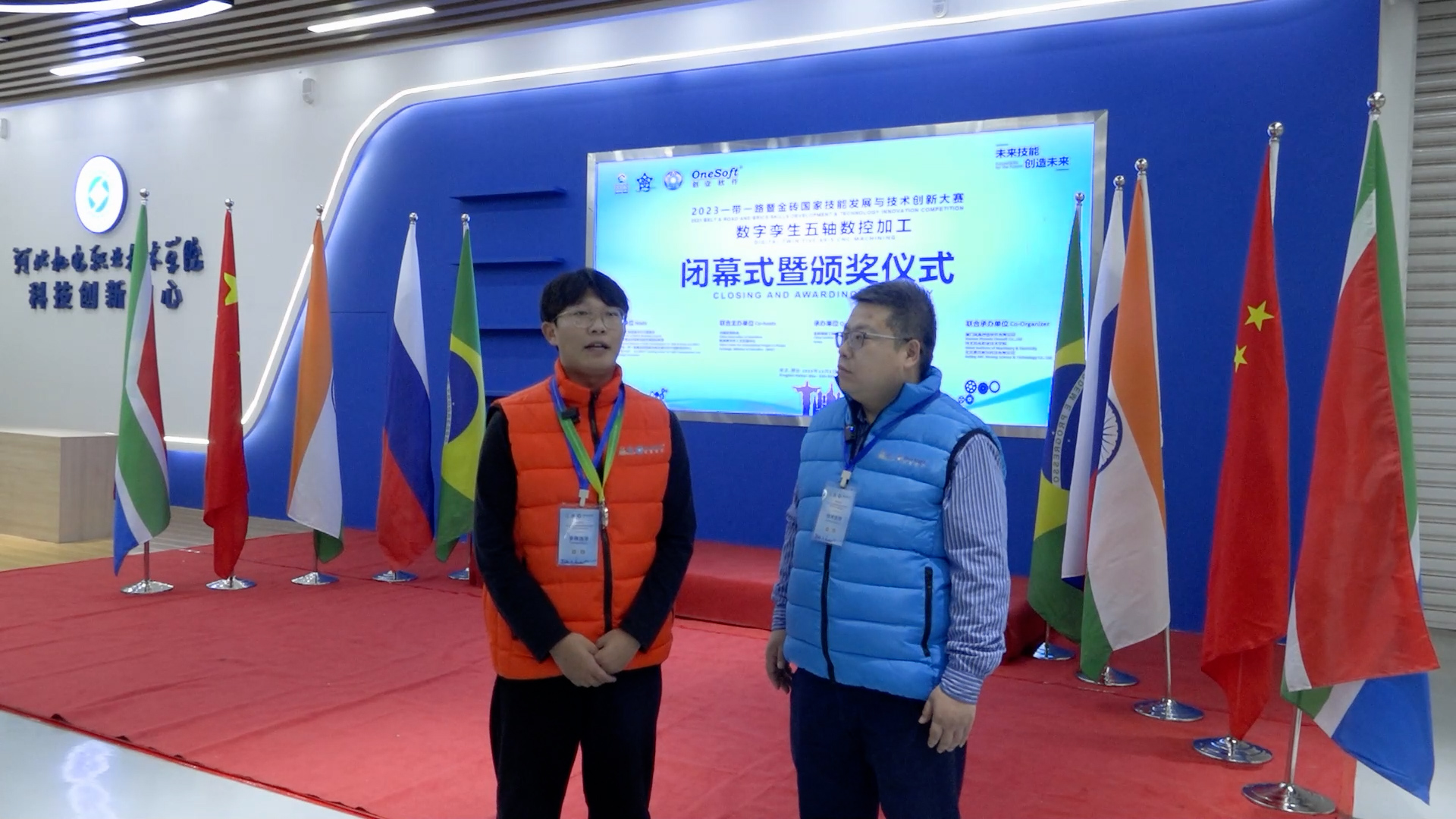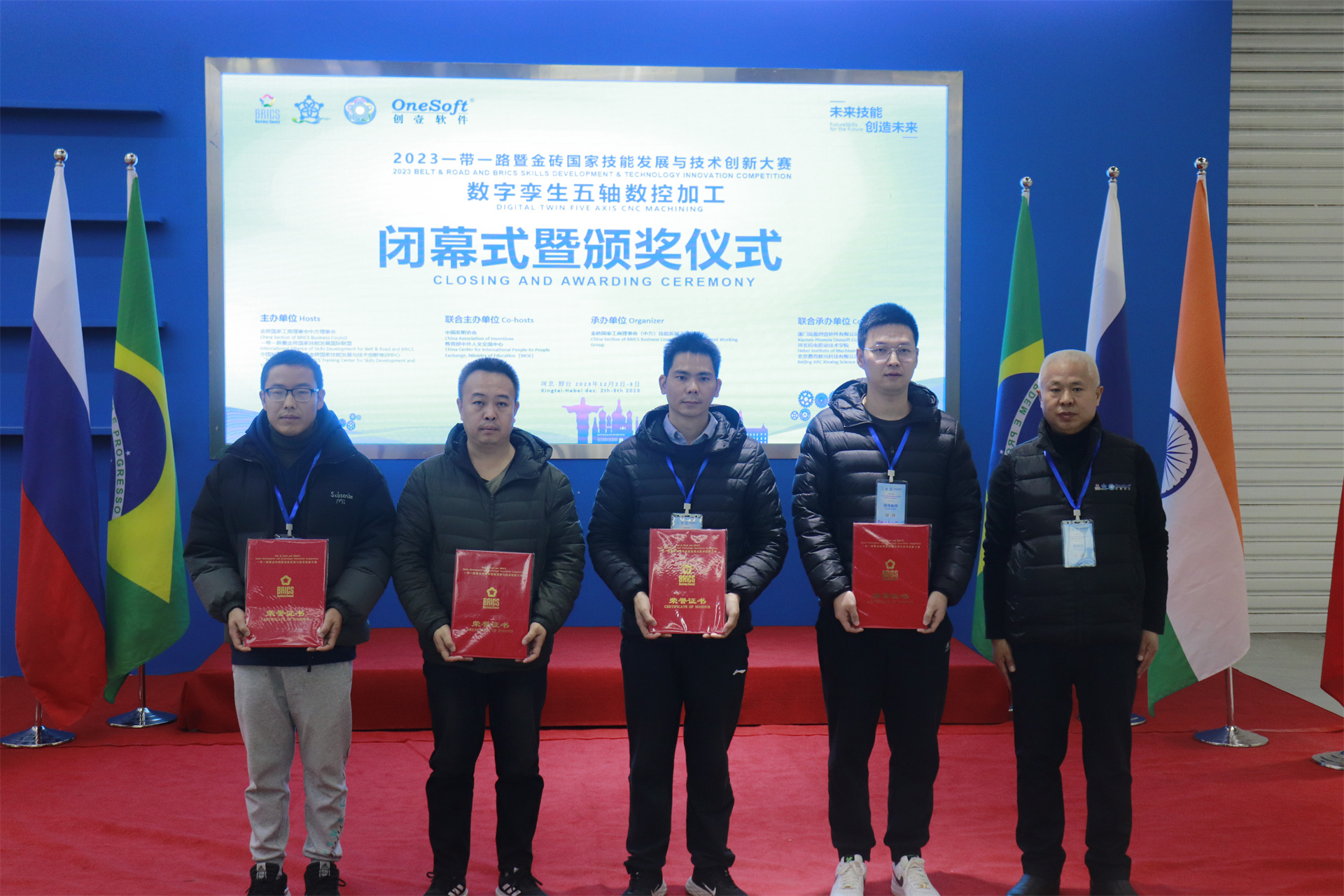 12月1日,2023一帶一路暨金磚國家技能發(fā)展與技術(shù)創(chuàng)新大賽數(shù)字孿生五軸數(shù)控加工賽項國內(nèi)決賽開幕式在萬峰大酒店舉行,由河北機電職業(yè)技術(shù)學(xué)院副院長李朝鵬主持。金磚國家工商理事會(中方)技能發(fā)展工作組組長、金磚國家技能發(fā)展與技術(shù)創(chuàng)新大賽組委會執(zhí)委會主席劉振英視頻致辭,中國教育國際交流協(xié)會副會長,前秘書長王永利、金磚國家技能發(fā)展與技術(shù)創(chuàng)新大賽組委會副主任何美連,河北省教育廳國際處劉江義處長、河北機電職業(yè)技術(shù)學(xué)院院長王曉鳳、廈門鳳凰創(chuàng)壹軟件有限公司運營總監(jiān)陳海寧等領(lǐng)導(dǎo)受邀出席并致辭。河北機電職業(yè)技術(shù)學(xué)院繼續(xù)教育部主任李成革、廈門鳳凰創(chuàng)壹軟件有限公司高級總監(jiān)江蕓梅等領(lǐng)導(dǎo)出席開幕式,仲裁長、總裁判長及裁判組成員、行業(yè)專家、參賽院校領(lǐng)隊、指導(dǎo)老師、參賽選手等近百人參加了開幕式。