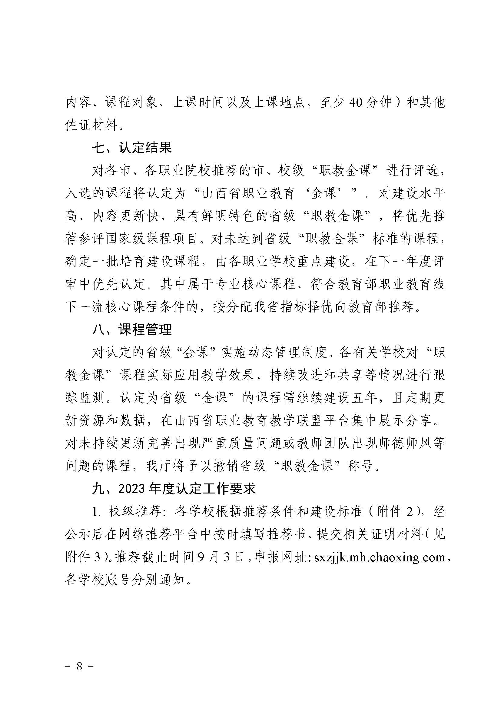近日,山西省教育廳、山西省人力資源和社會保障廳聯(lián)合發(fā)布關于實施山西省職業(yè)院校“職教金課”建設的通知,根據(jù)《意見》中“實施‘職教金課’建設,培育、建設、認定一批精品課程”的要求,繼續(xù)推進 200 門在線精品課程(線上“金課”)建設工作,進一步推動先進教學方法和現(xiàn)代教學手段在教學中的應用,引深教師、教法、教材領域的改革,到 2025 年再建設 600 門左右“職教金課”,包括線下“金課”、線上線下混合式“金課”、虛擬仿真教學“金課”和社會實踐“金課”,提升課程的高階性,突出課程的創(chuàng)新性,增加課程的挑戰(zhàn)度,推動課程思政的理念形成廣泛共識,確立學生中心、產(chǎn)出導向、持續(xù)改進的理念,形成職業(yè)教育特色鮮明的課程集群。