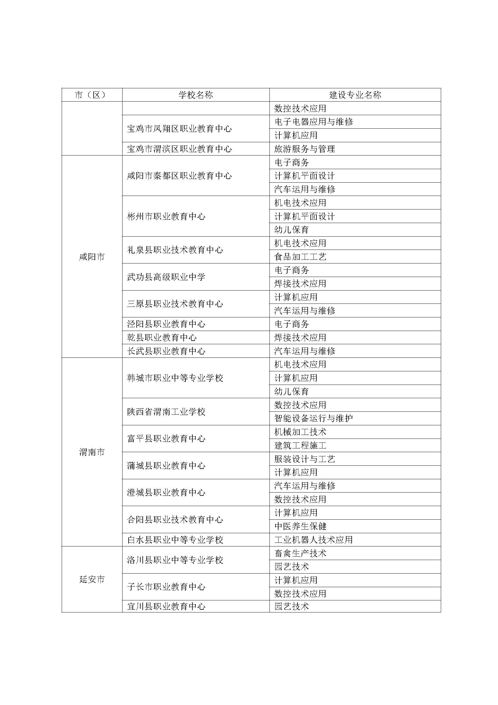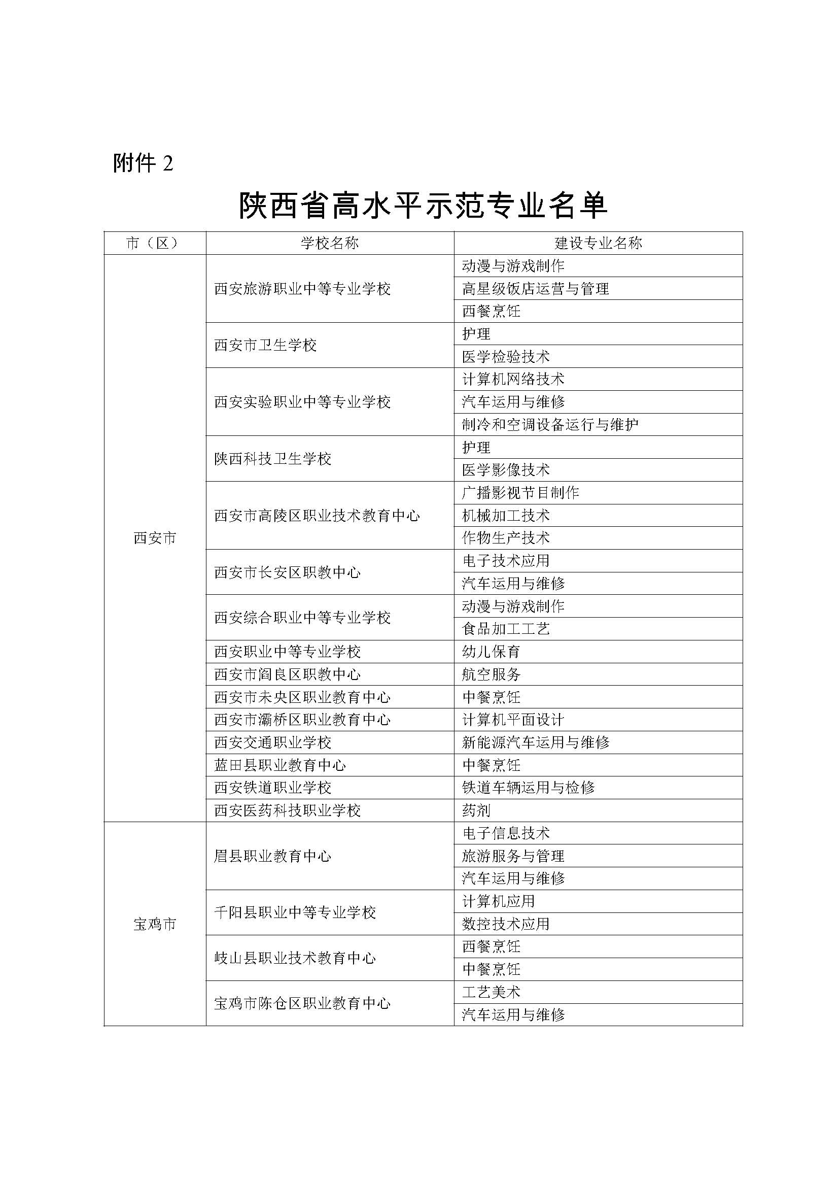 根據(jù)《陜西省教育廳 陜西省財(cái)政廳關(guān)于印發(fā)〈陜西省中等職業(yè)教育優(yōu)質(zhì)學(xué)校和優(yōu)質(zhì)專業(yè)建設(shè)計(jì)劃實(shí)施方案〉的通知》(陜教〔2023〕10號,以下簡稱《實(shí)施方案》),經(jīng)學(xué)校申報、市級推薦、形式審查、專家評審和結(jié)果公示等程序,現(xiàn)將50所陜西省高水平示范性中等職業(yè)學(xué)校和150個示范專業(yè)建設(shè)項(xiàng)目(以下簡稱“雙示范”建設(shè)項(xiàng)目)名單予以公布,并就做好有關(guān)工作通知如下。