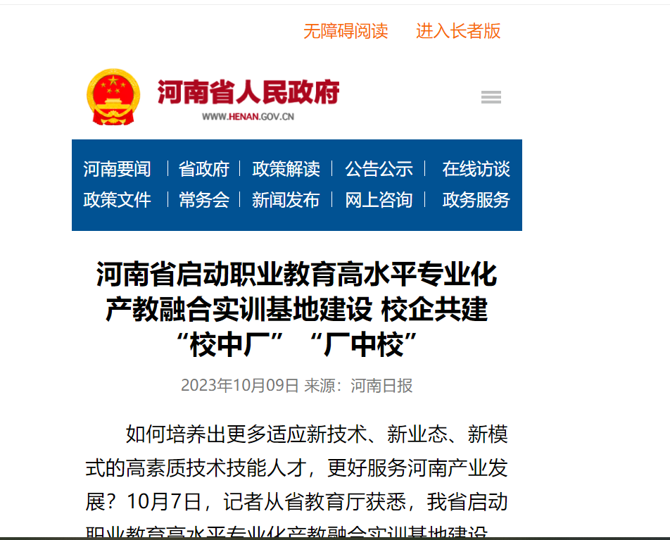 對立項建設的“河南省職業(yè)教育高水平專業(yè)化產(chǎn)教融合實訓基地”,省財政廳、省教育廳將給予專項資金支持。