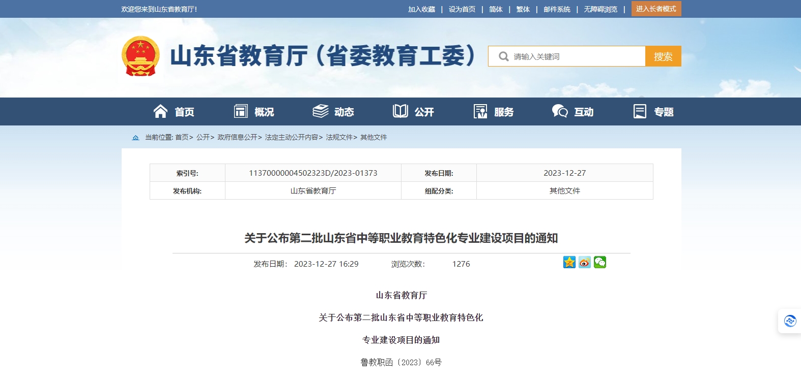 近日,山東省教育廳發(fā)布《關(guān)于公布第二批山東省中等職業(yè)教育特色化專(zhuān)業(yè)建設(shè)項(xiàng)目的通知》,根據(jù)《山東省教育廳關(guān)于開(kāi)展第二批山東省中等職業(yè)教育專(zhuān)業(yè)特色化建設(shè)項(xiàng)目申報(bào)工作的通知》,經(jīng)學(xué)校申報(bào)、各市推薦、專(zhuān)家評(píng)審,山東省確定36個(gè)專(zhuān)業(yè)為第二批山東省中等職業(yè)教育特色化專(zhuān)業(yè)建設(shè)項(xiàng)目,目前名單已公布。
