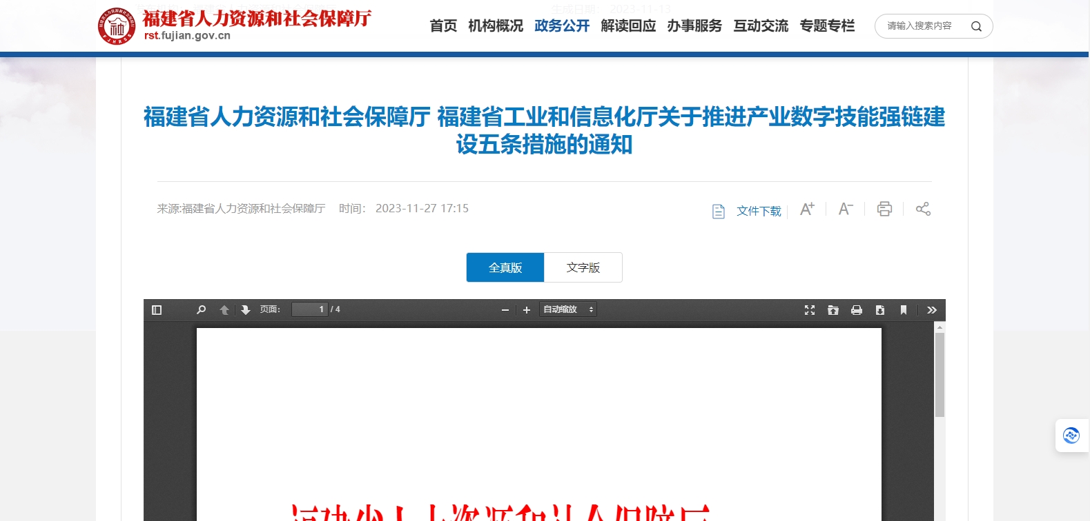 福建省人力資源和社會保障廳 福建省工業(yè)和信息化廳發(fā)布關于推進產業(yè)數(shù)字技能強鏈建設五條措施的通知