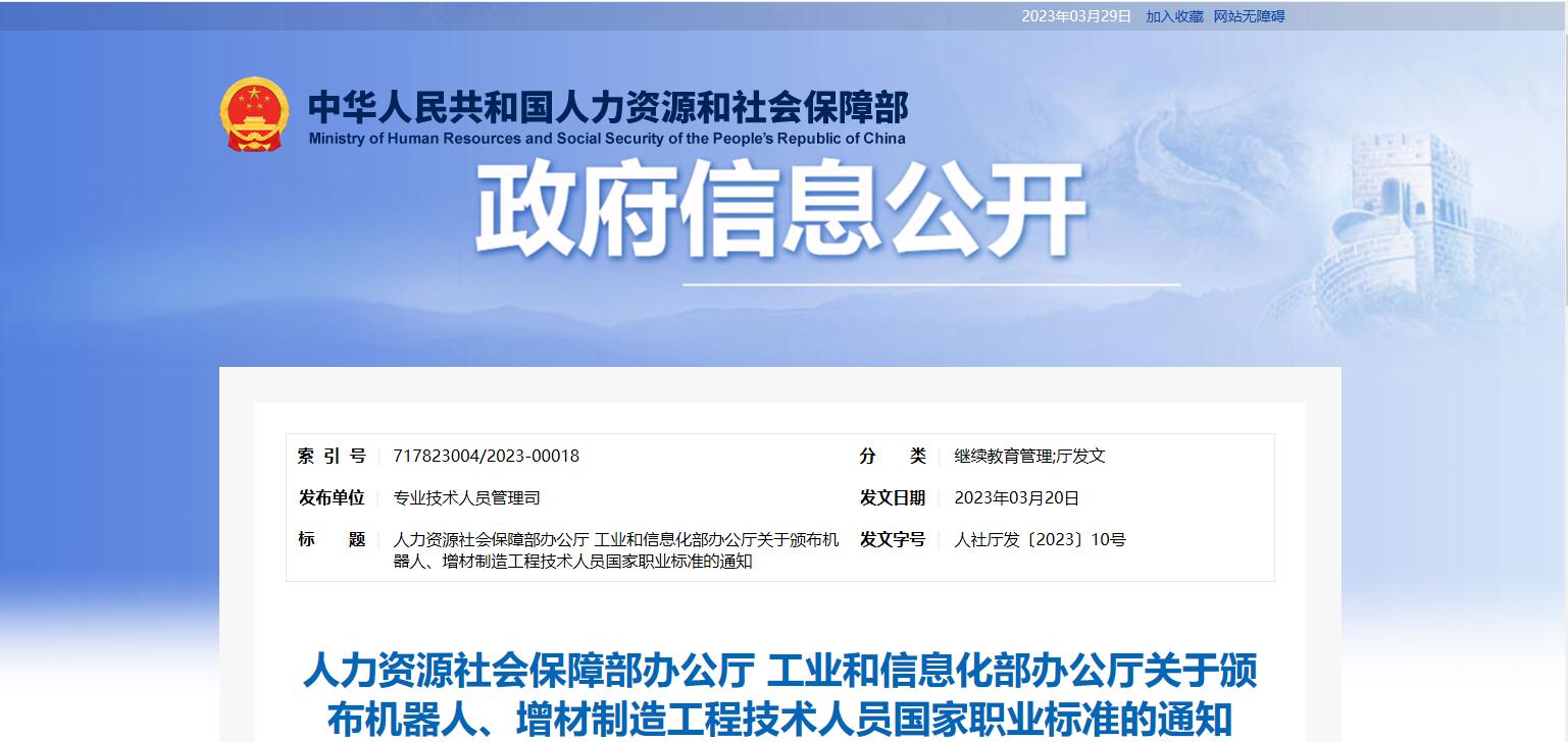 機(jī)器人、增材制造工程技術(shù)人員等4個國家職業(yè)標(biāo)準(zhǔn)頒布