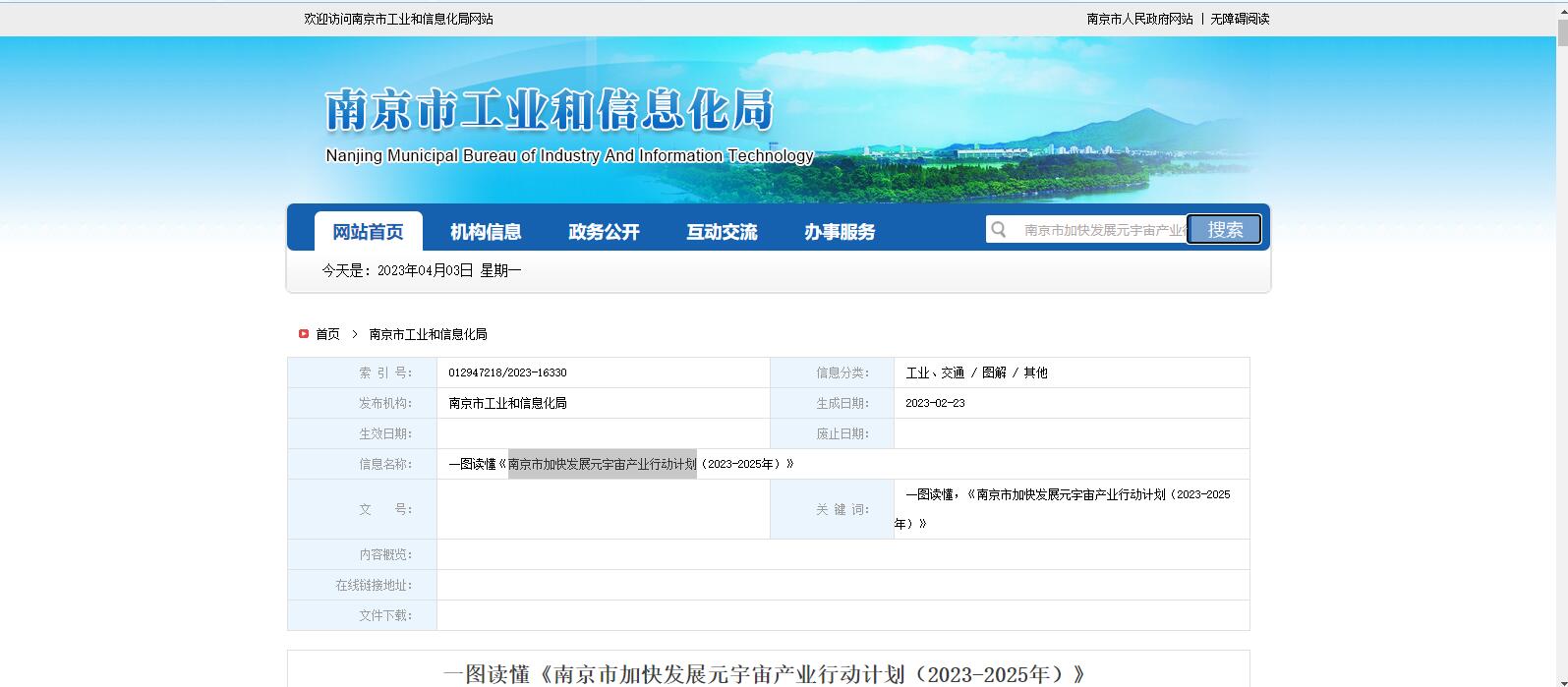 南京市工業(yè)和信息化局發(fā)布《南京市加快發(fā)展元宇宙產(chǎn)業(yè)行動計(jì)劃(2023-2025年)》