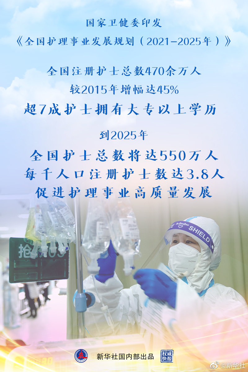 國家衛(wèi)健委近日印發(fā)《全國護理事業(yè)發(fā)展規(guī)劃(2021-2025年)》。規(guī)劃指出,2020年底,全國注冊護士總數(shù)470余萬人,較2015年增幅達45%。具有大專以上學(xué)歷的護士超70%,護士隊伍學(xué)歷素質(zhì)進一......
